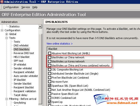 1.打开Administration Tool -》Configuration -》 Tests -》DNS Blacklists